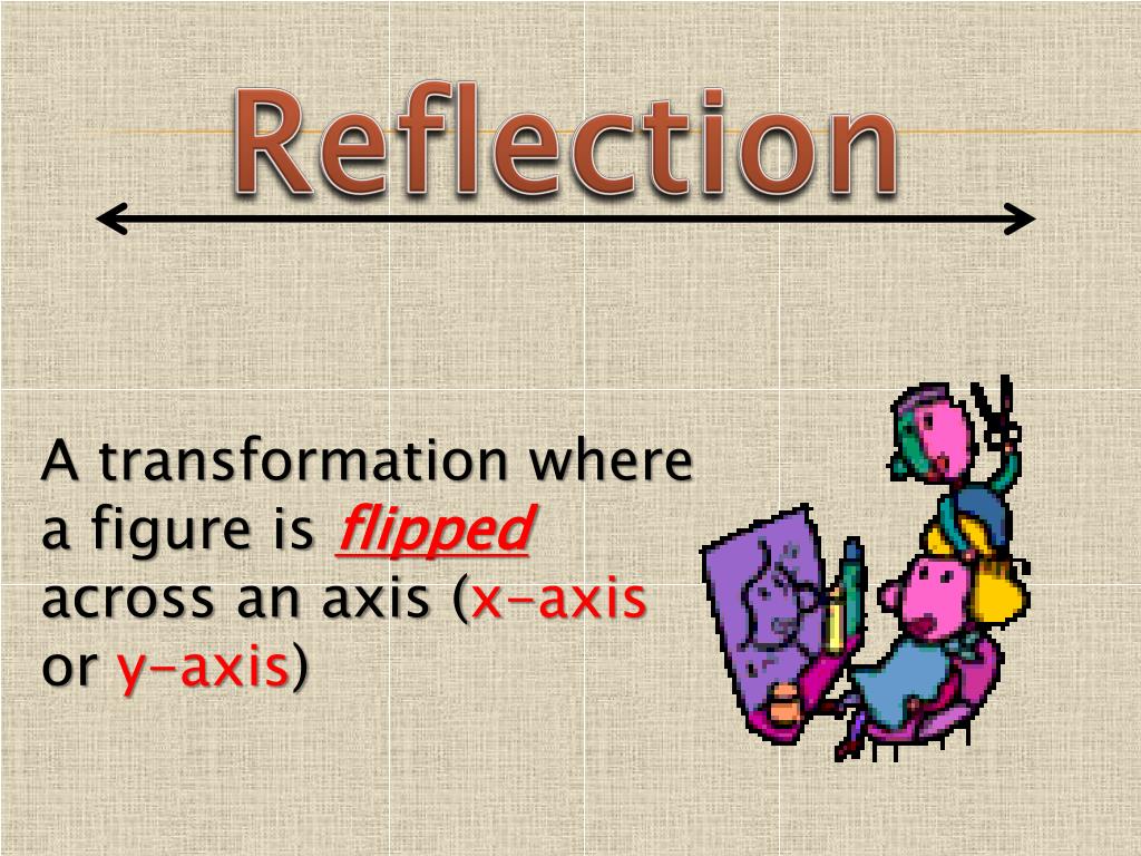 Reflection Reflection A transformation where a figure is flippedacross an axis (x-axis or y-axis)