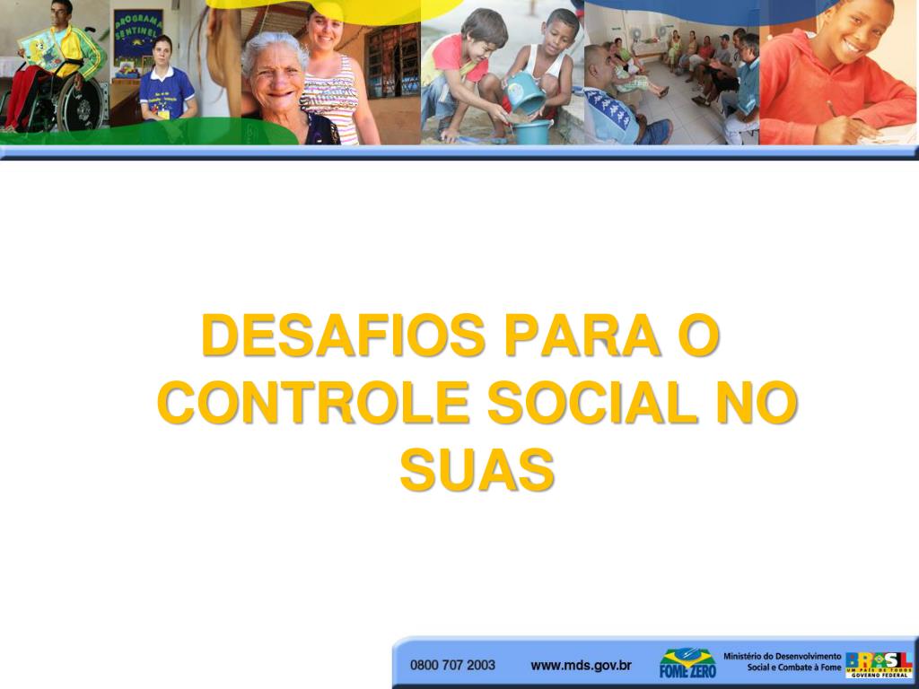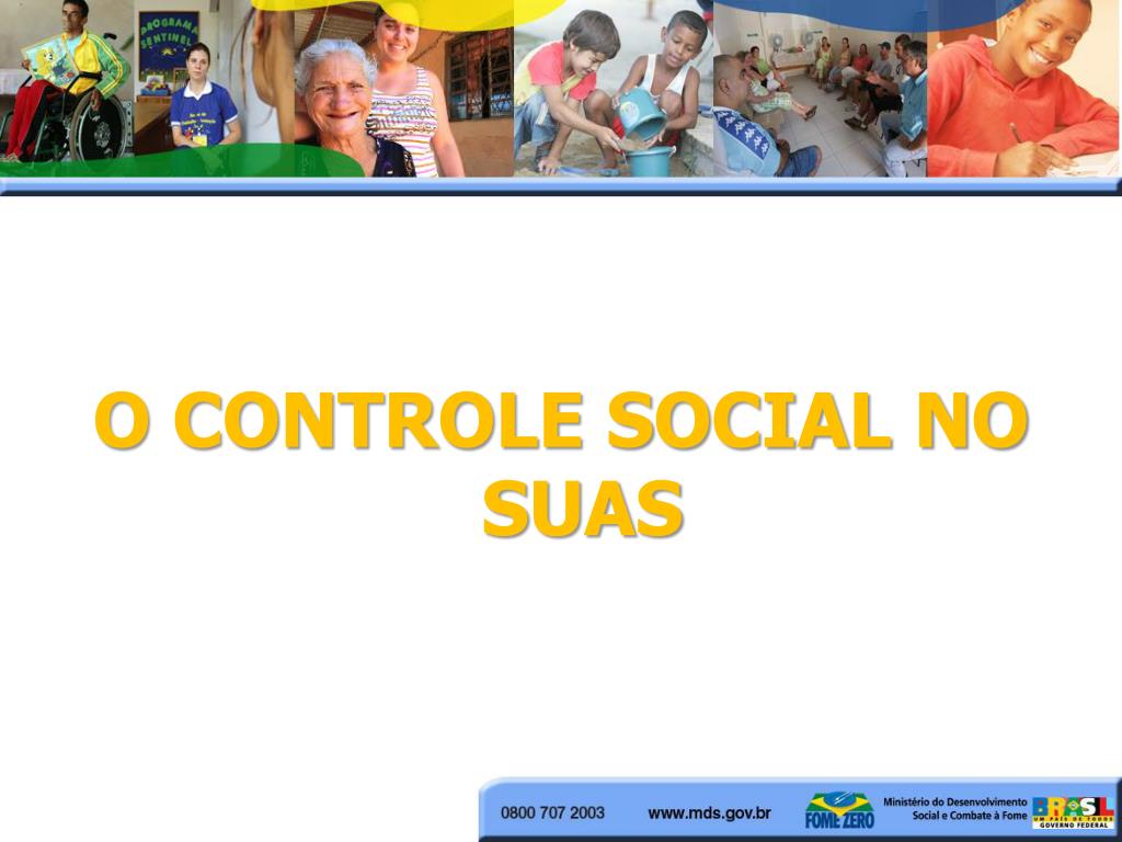 O CONTROLE SOCIAL NO SUAS:O Controle Social, no âmbito dos conselhos de assistência social, é o exercício democrático de acompanhamento e a avaliação da implementação e execução do SUAS.