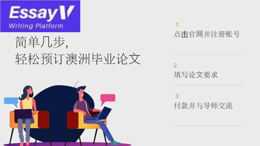 点击官⽹并注册账号 1: 简单⼏步, 轻松预订澳洲毕业论⽂ 2: 填写论⽂要求 3: 付款并与导师交流