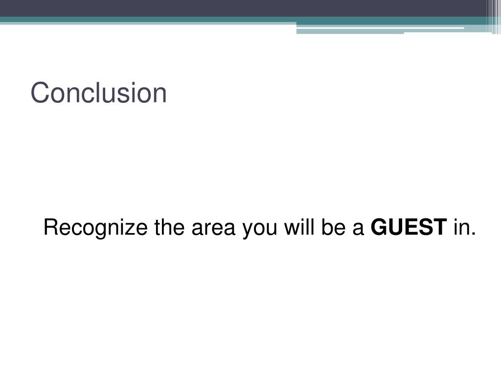Recognize the area you will be a GUEST in. Conclusion