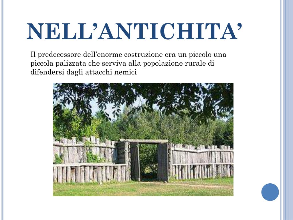 NELL’ANTICHITA’ Il predecessore dell’enorme costruzione era un piccolo una piccola palizzata che serviva alla popolazione rurale di difendersi dagli attacchi nemici