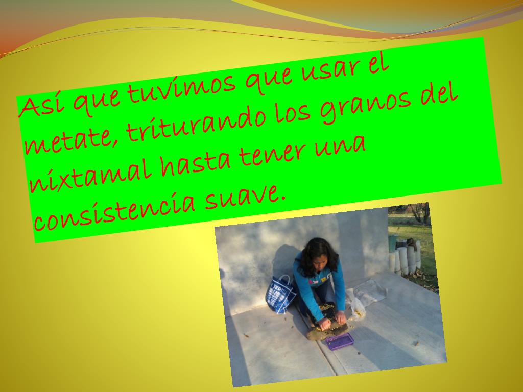 Así que tuvimos que usar el metate, triturando los granos del nixtamal hasta tener una consistencia suave.