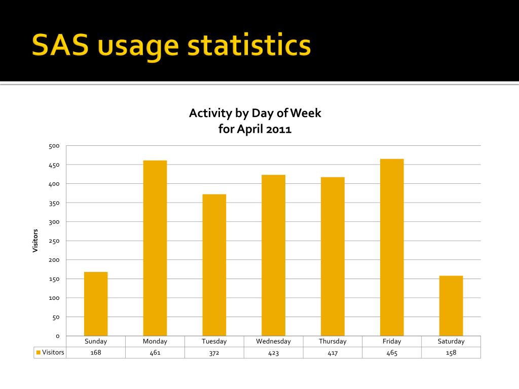 SAS usage statistics • 377 user accounts • 1100+ reports that provide various data listings • 100+ analytic reports