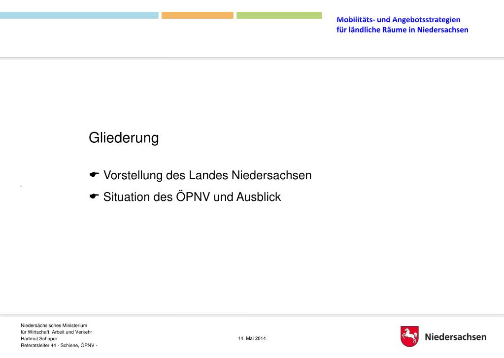Gliederung Vorstellung des Landes Niedersachsen Situation des ÖPNV und Ausblick