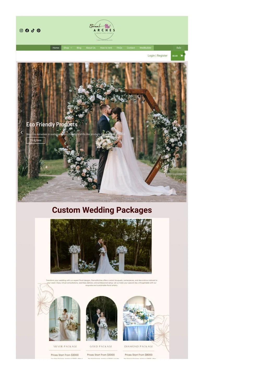 Sale Home Shop Blog About Us How to rent FAQs Contact WedBuilder 0 Login | Register $0.00 Eco Friendly Products Eco Friendly Products We pride ourselves in sustainable eco friendly and life like products for your special event We pride ourselves in sustainable eco friendly and life like products for your special event Click Here Click Here Custom Wedding Packages