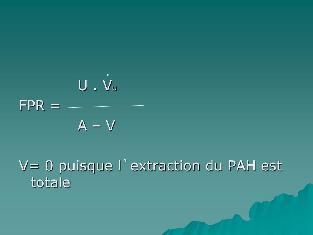 . U . Vu FPR = A – V V= 0 puisquel`extraction du PAH est totale