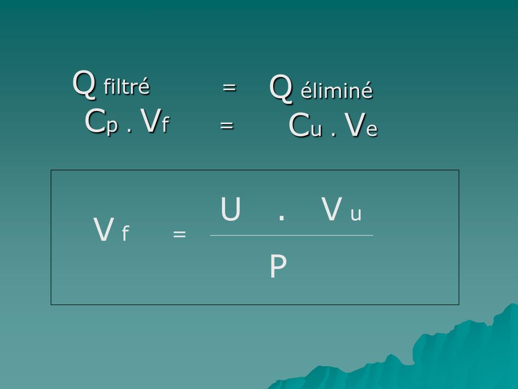 Q filtré = Cp . Vf = Q éliminé Cu . Ve U . V u V f = P