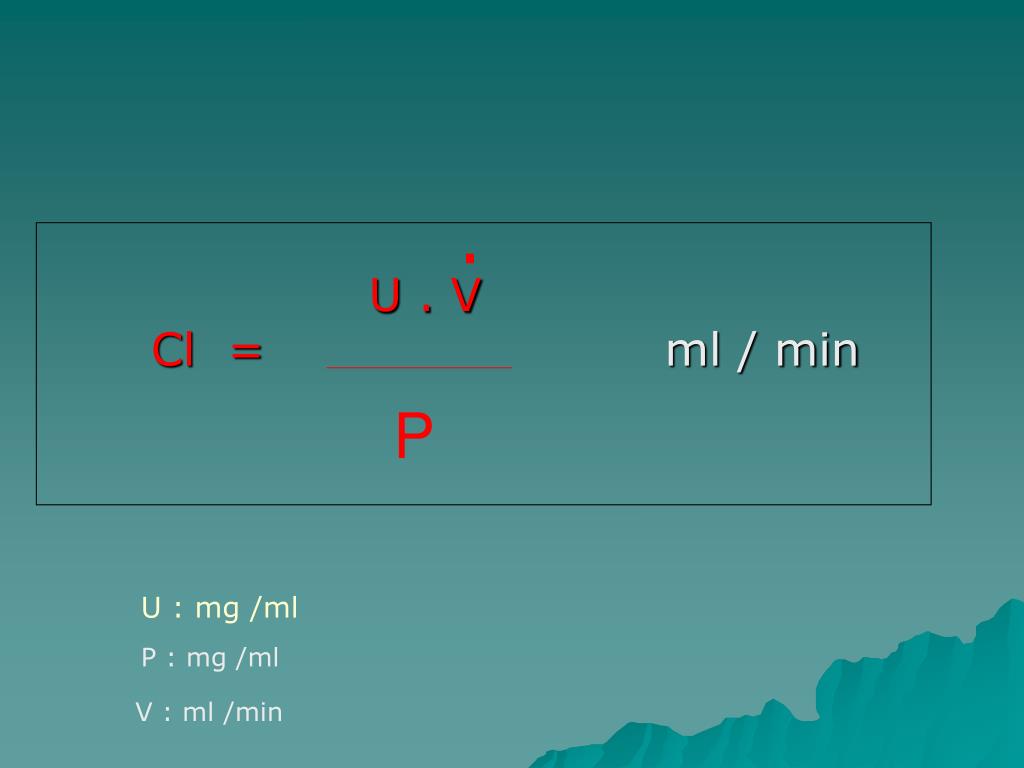 U . VCl = ml / min . P U : mg /ml P : mg /ml V : ml /min