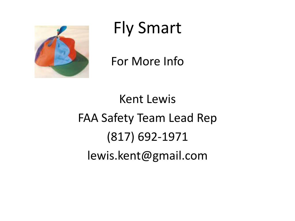 Fly Smart For More Info Kent Lewis FAA Safety Team Lead Rep (817) 692-1971 lewis.kent@gmail.com