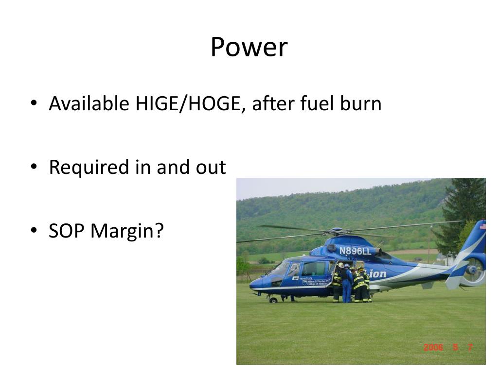 Power • Available HIGE/HOGE, after fuel burn • Required in and out • SOP Margin?