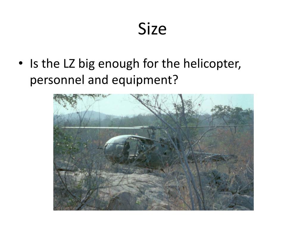 Size • Is the LZ big enough for the helicopter, personnel and equipment?