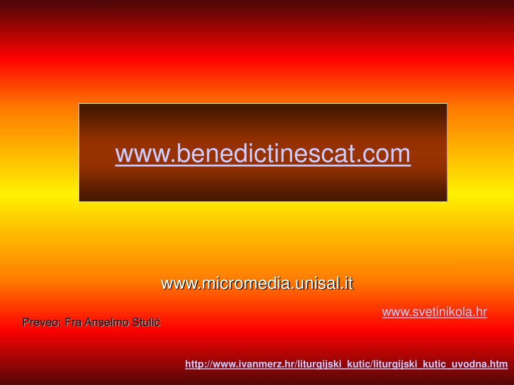 www.benedictinescat.com www.micromedia.unisal.it www.svetinikola.hr Preveo: Fra Anselmo Stulić http://www.ivanmerz.hr/liturgijski_kutic/liturgijski_kutic_uvodna.htm