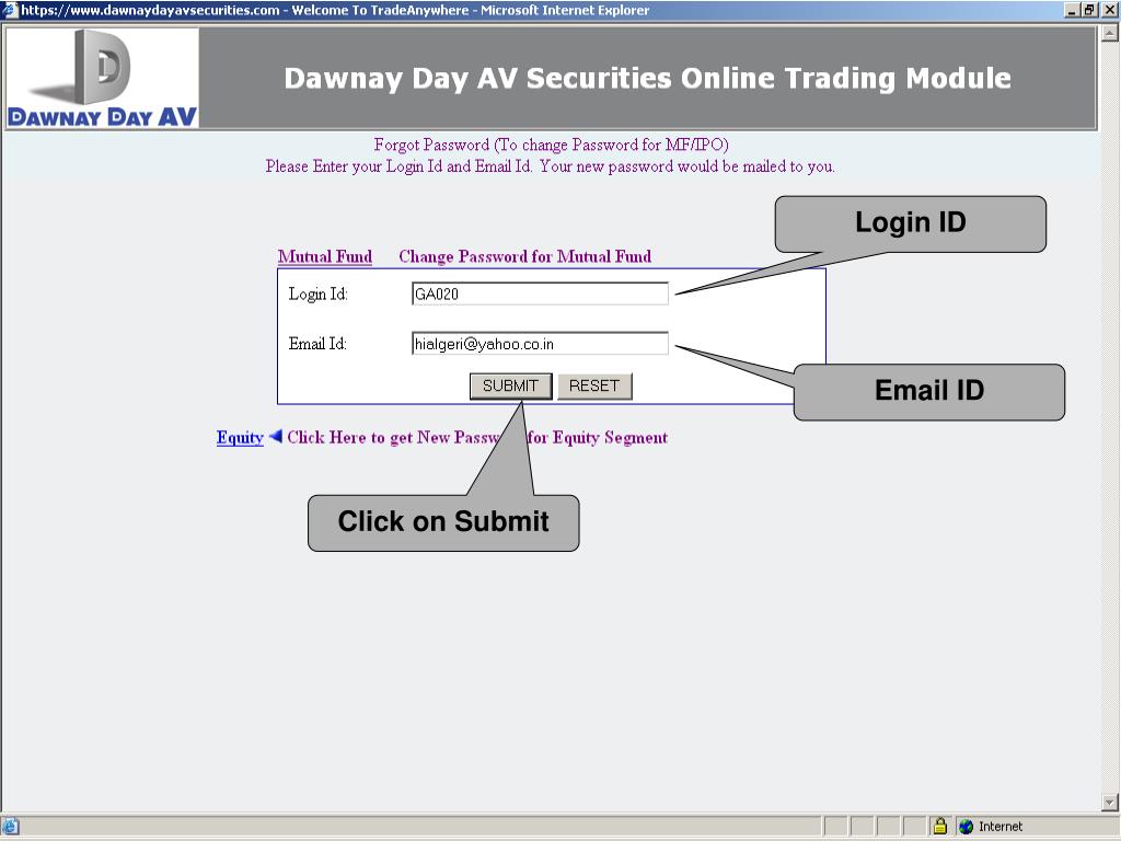 Login ID Email ID Click on Submit