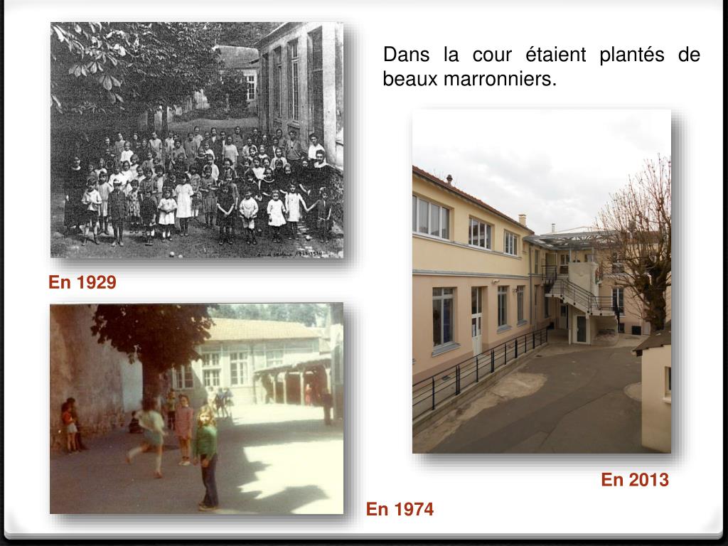 Dans la cour étaient plantés de beaux marronniers. En 1929 En 2013 En 1974