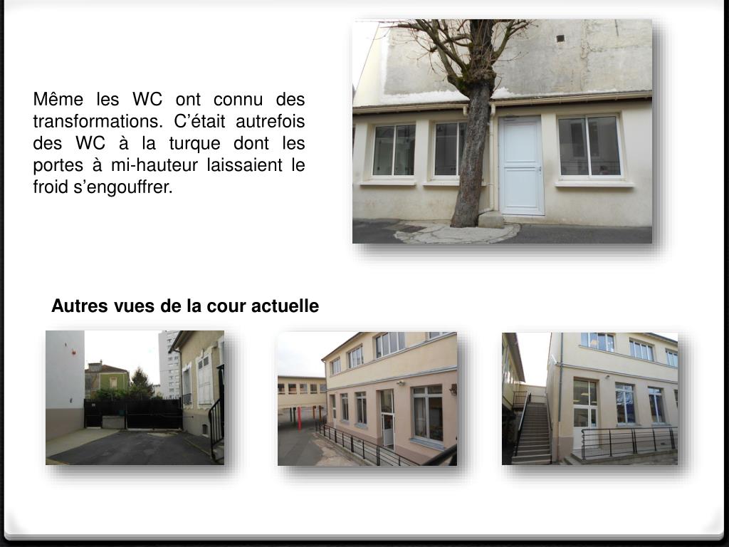 Même les WC ont connu des transformations. C’était autrefois des WC à la turque dont les portes à mi-hauteur laissaient le froid s’engouffrer. Autres vues de la cour actuelle