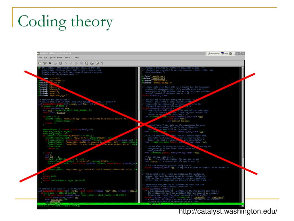 Other applications of codes • Outside communication/storage domain • Tons of applications in theory • Complexity Theory • Cryptography • Algorithms