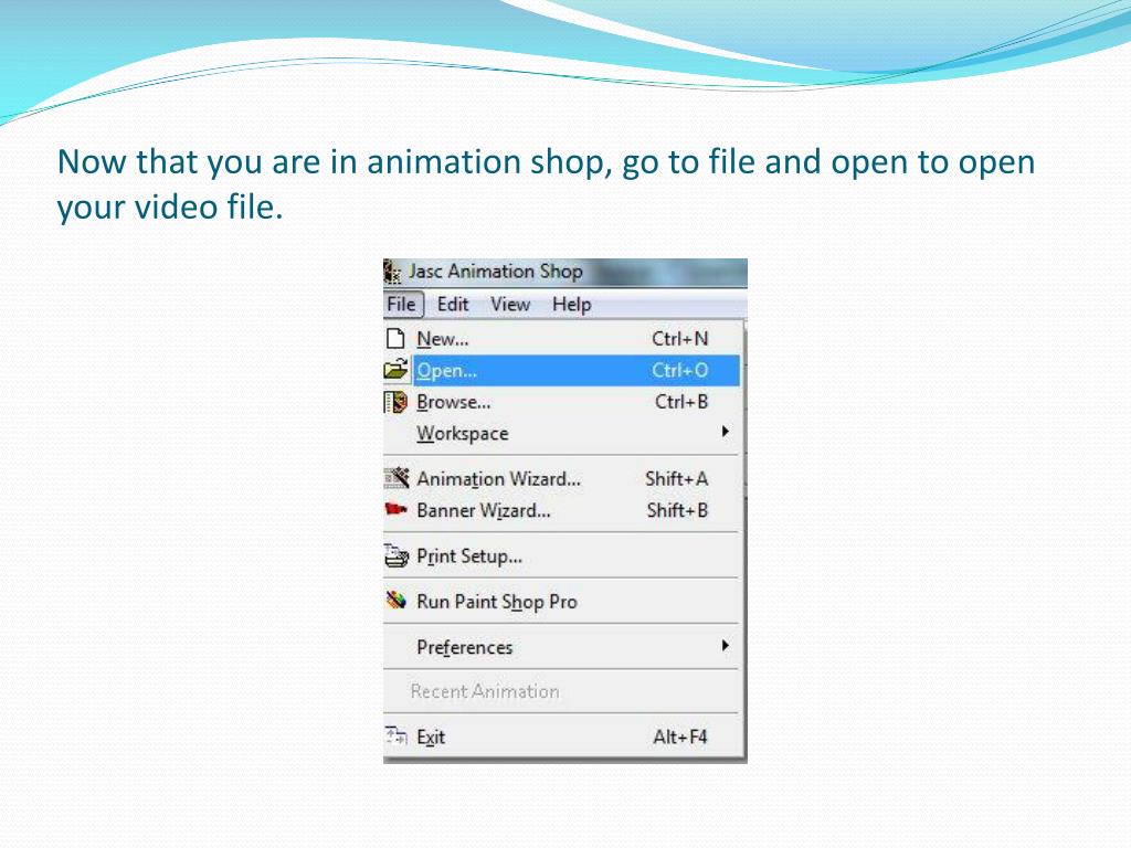 Now its time to open animation shop, open your psp, and go to file and jasc software products, then launch animation shop.