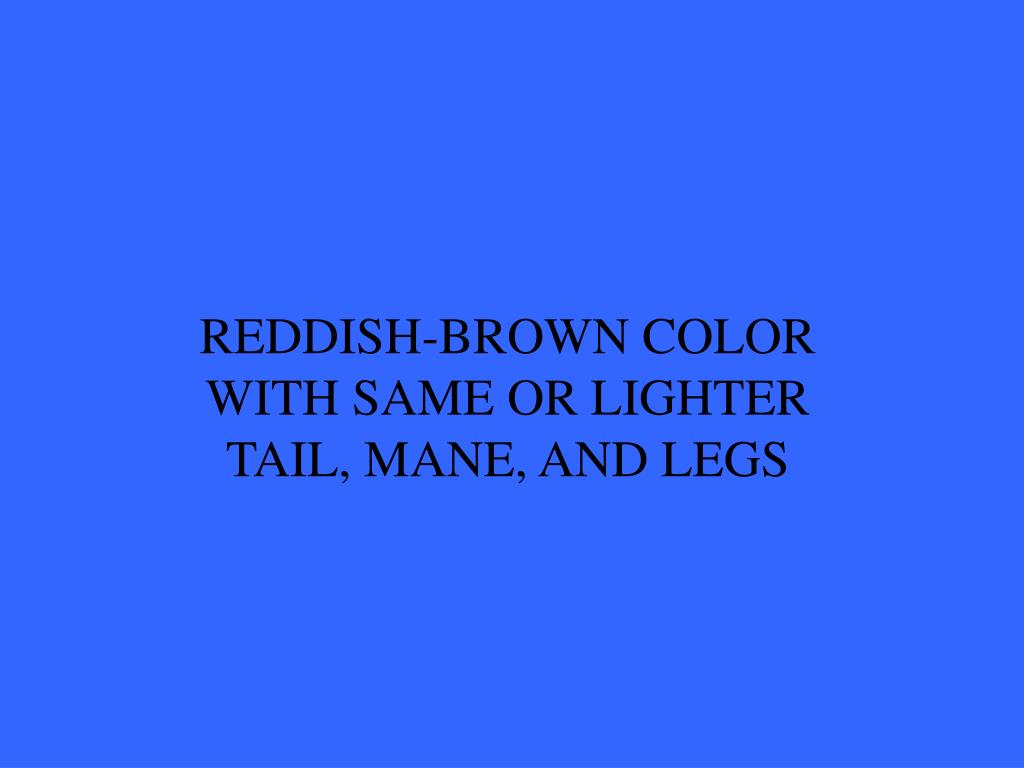 BROWN OR REDDISH-BROWN BODY WITH BLACK “POINTS” (MANE, TAIL, AND LEGS).