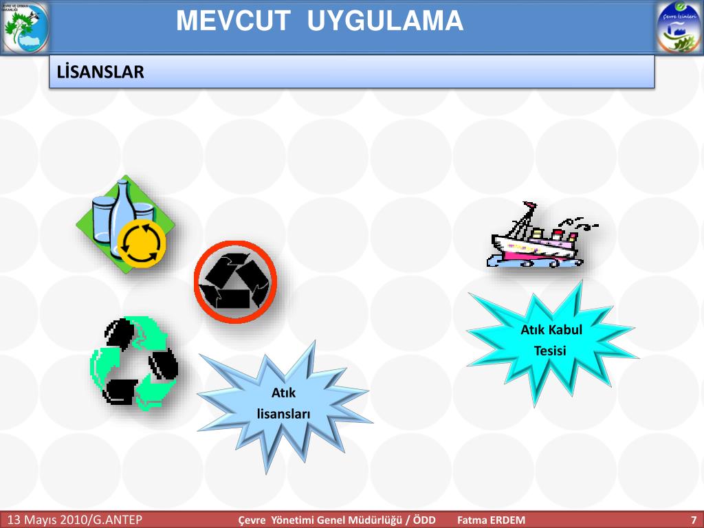 MEVCUT UYGULAMA LİSANSLAR Atık Kabul Tesisi Atık lisansları Çevre Yönetimi Genel Müdürlüğü / ÖDD Fatma ERDEM