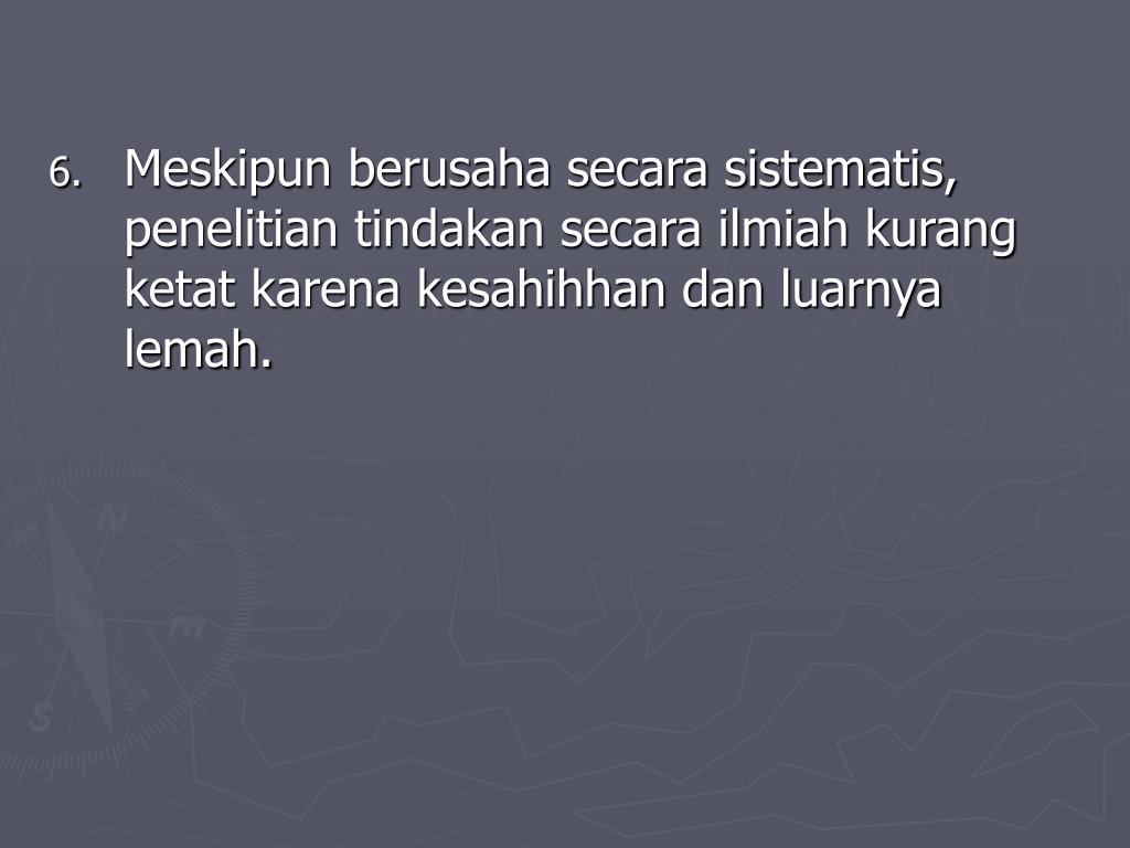 Meskipun berusaha secara sistematis, penelitian tindakan secara ilmiah kurang ketat karena kesahihhan dan luarnya lemah.
