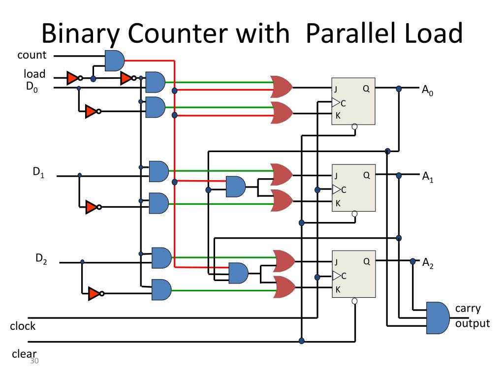 count load D0 A0 Q J C K D1 A1 Q J C K D2 A2 Q J C K carry output clock clear Binary Counter with Parallel Load