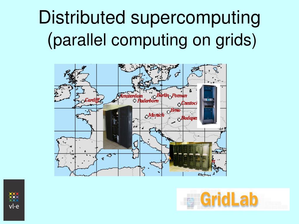 Distributed supercomputing (parallel computing on grids) DAS-2 VU (72 nodes) UvA (32) GigaPort Leiden (32) Delft (32) Utrecht (32) Distributed ASCI Supercomputer 2