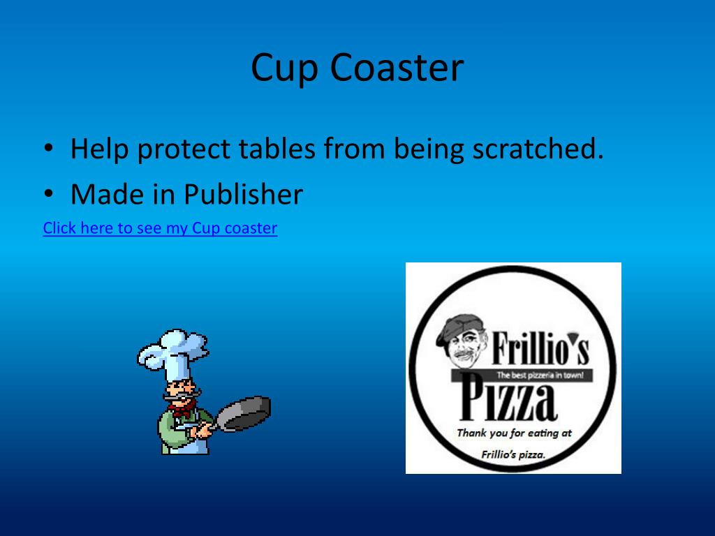 Cup Coaster • Help protect tables from being scratched. • Made in Publisher Click here to see my Cup coaster