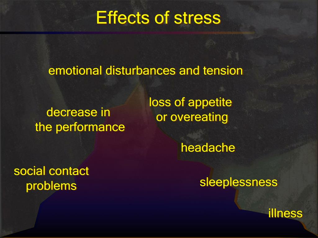 Effects of stress emotional disturbances and tension loss of appetite or overeating decrease in the performance headache social contact problems sleeplessness illness