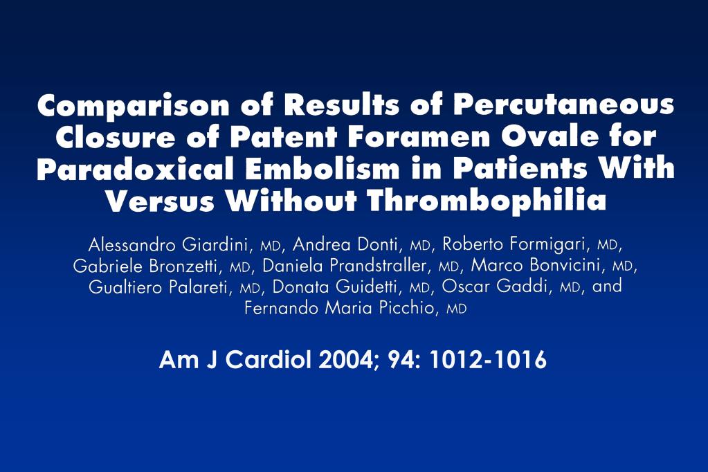 FORAME OVALE PERVIO E COAGULOPATIE. Elisabetta Favaretto U.O. Angiologia e Malattie della coagulazione “Marino Golinelli” Policlinico S.Orsola Malpighi Università di Bologna. Dati della letteratura. TROMBOFILIA Ictus giovanile 25% associato a PFO 11% - 31%
