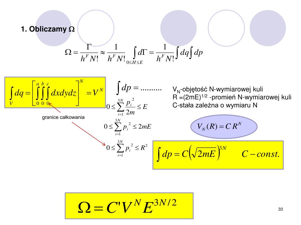 1. Obliczamy VN-objętośćN-wymiarowej kuli • R =(2mE)1/2-promień N-wymiarowej kuli C-stała zależna o wymiaru N granice całkowania