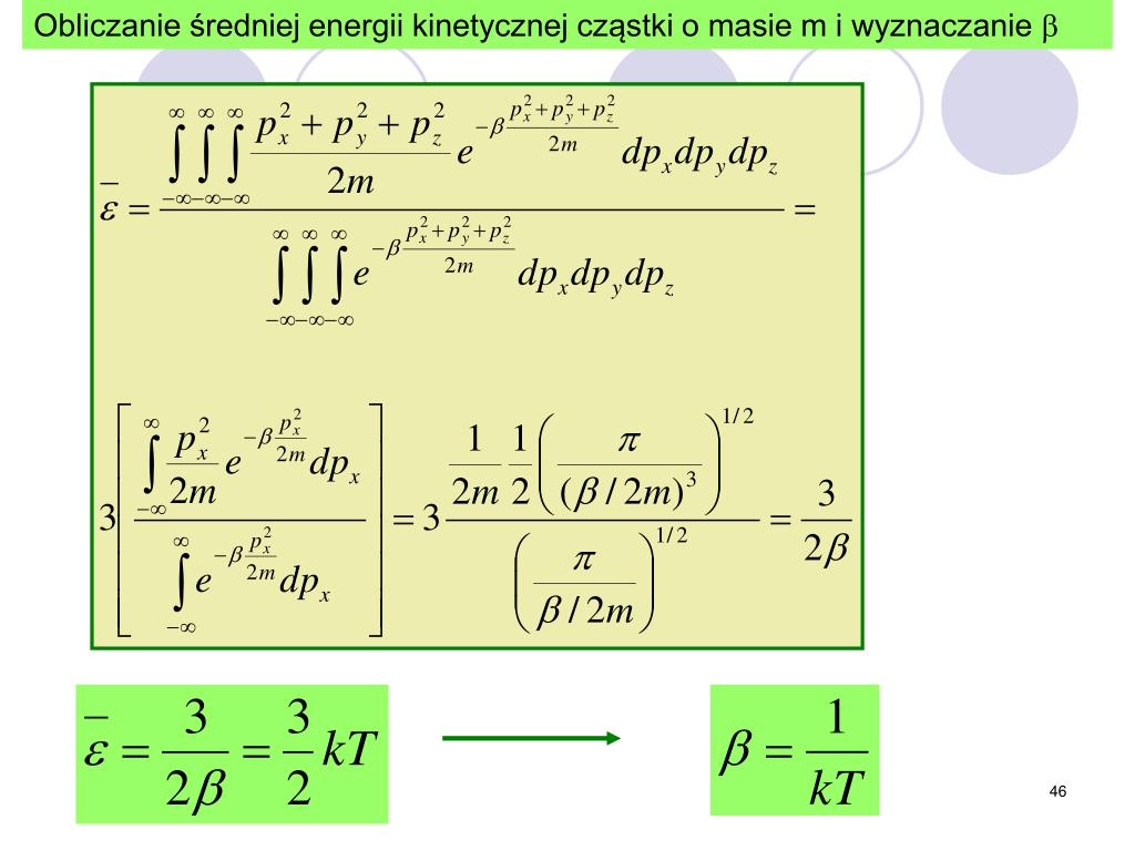 Obliczanie średniej energii kinetycznej cząstki o masie m i wyznaczanie