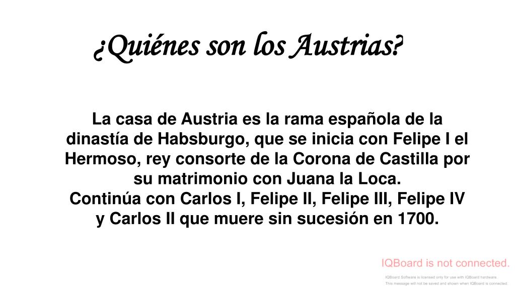¿Quiénes son los Austrias? La casa de Austria es la rama española de la dinastía de Habsburgo, que se inicia con Felipe I el Hermoso, rey consorte de la Corona de Castilla por su matrimonio con Juana la Loca. Continúa con Carlos I, Felipe II, Felipe III, Felipe IV y Carlos II que muere sin sucesión en 1700.