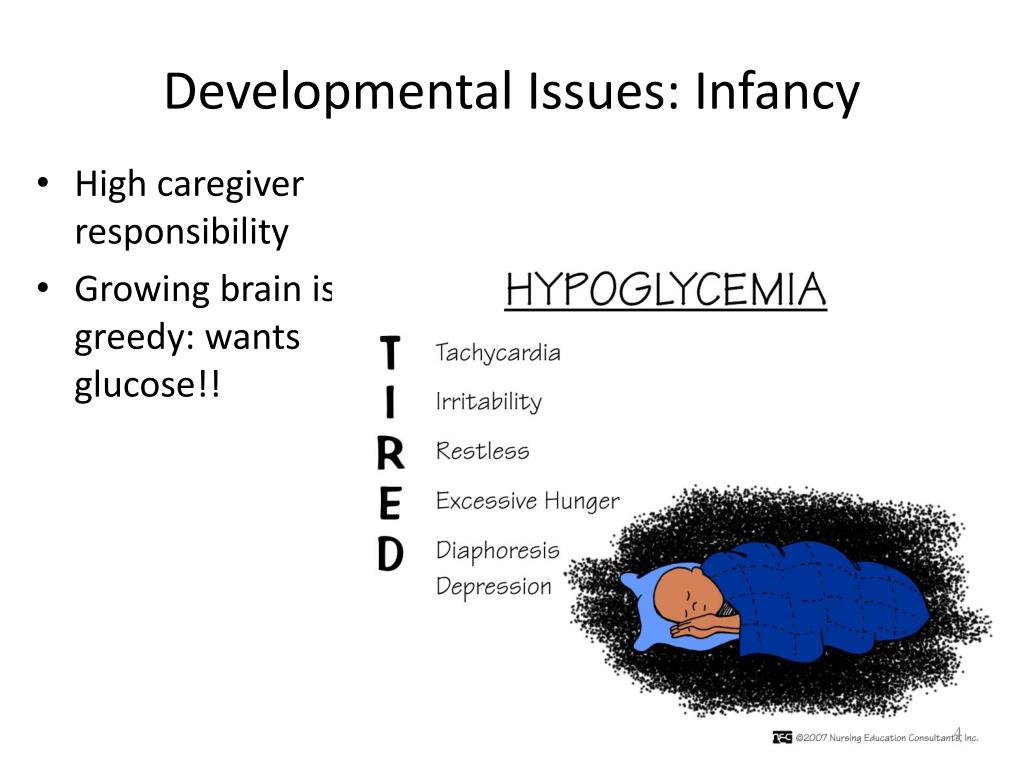 Developmental Issues: Infancy • High caregiver responsibility • Growing brain is greedy: wants glucose!!