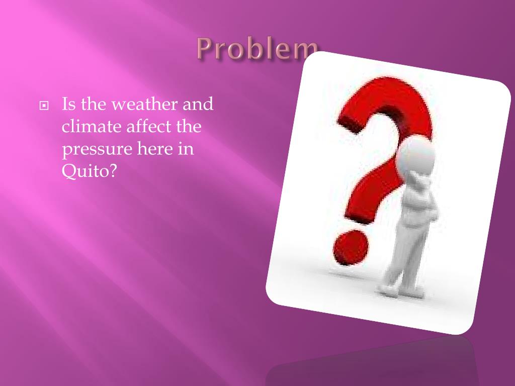 Problem • Is the weather and climate affect the pressure here in Quito?