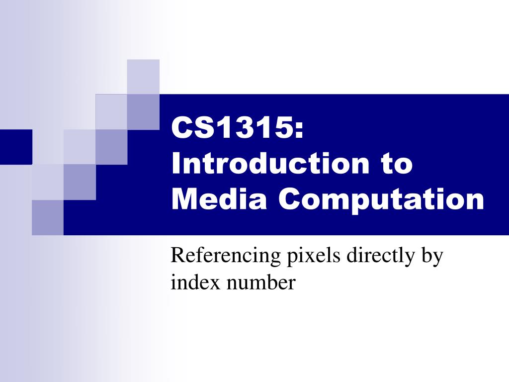 CS1315: Introduction to Media Computation Referencing pixels directly by index number