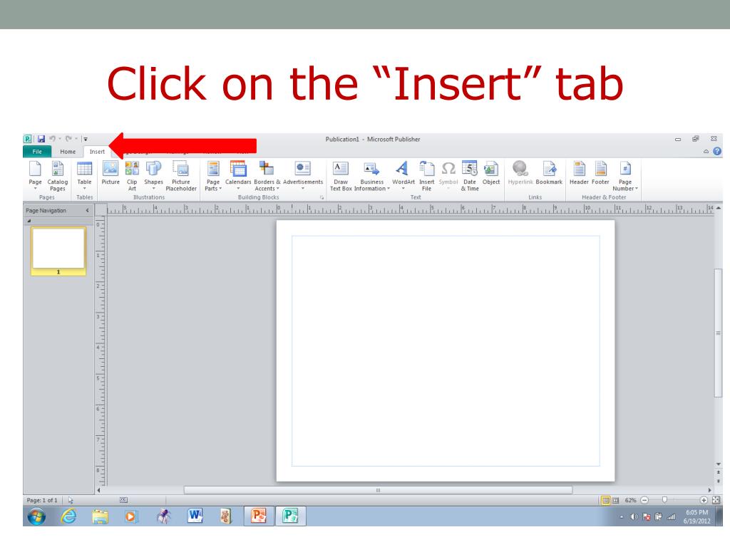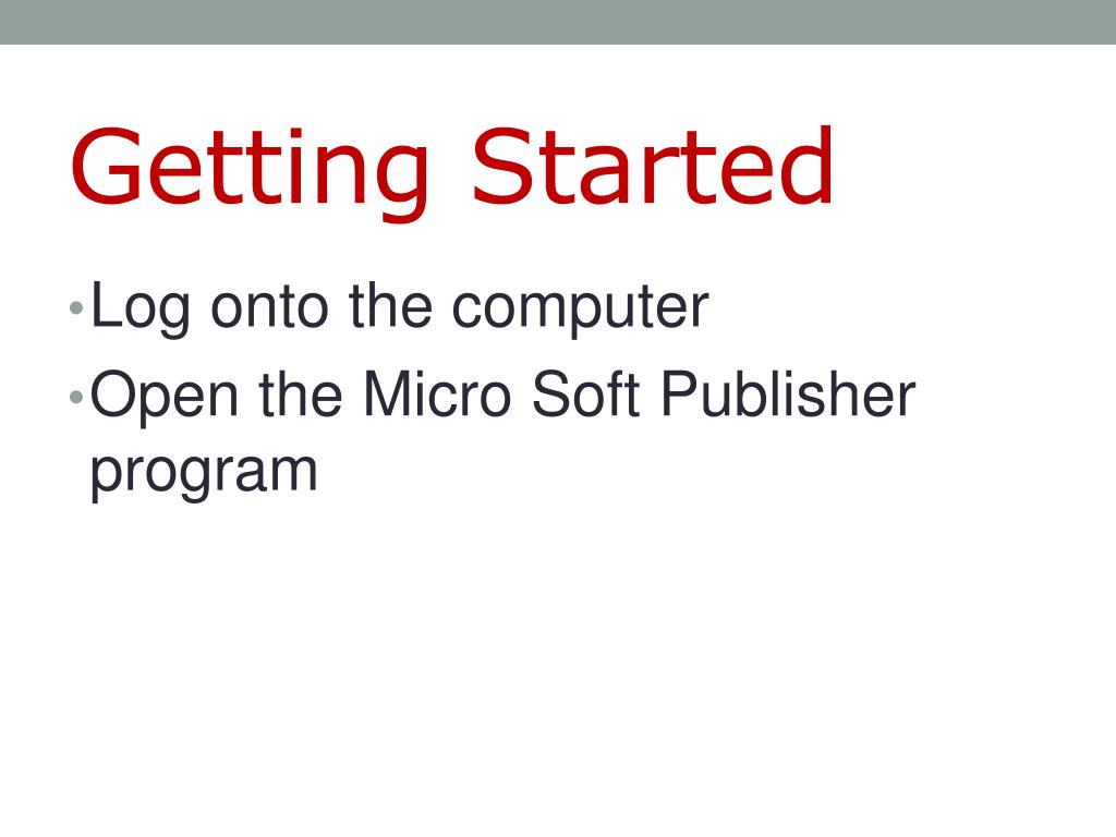 Getting Started • Log onto the computer • Open the Micro Soft Publisher program