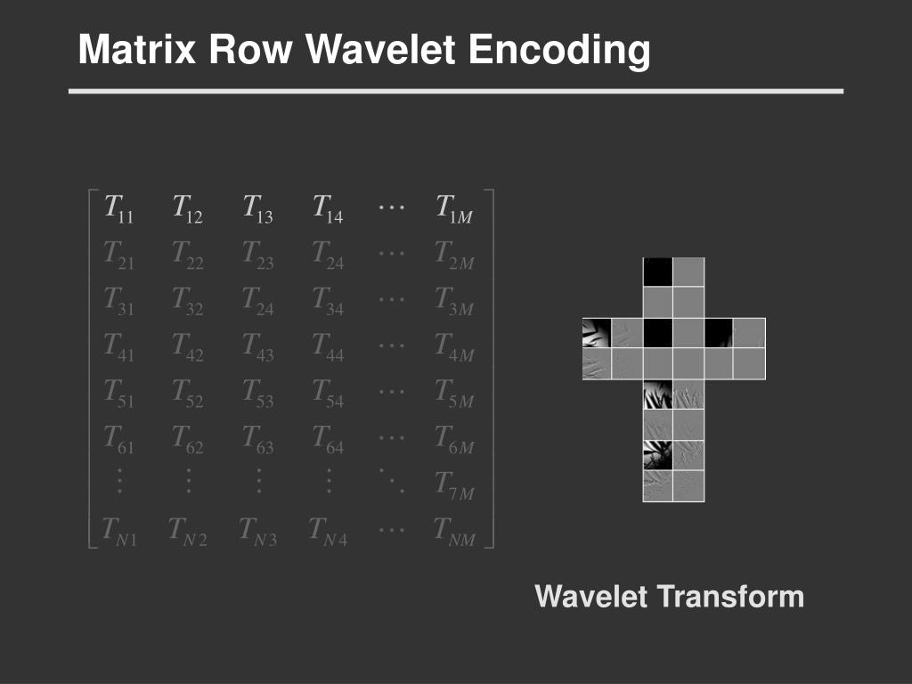 Matrix Row Wavelet Encoding 0 0 0 ’ ’ Only 3% – 30% are non-zero