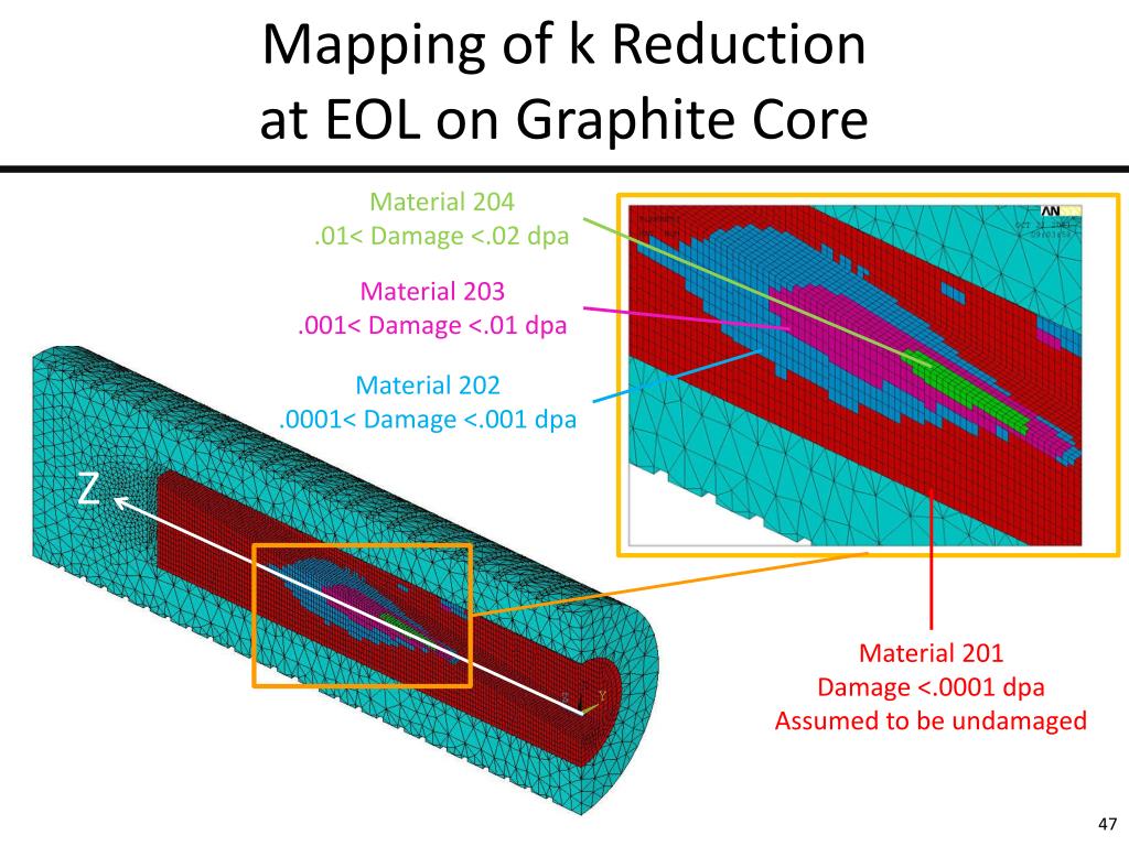 Mapping of k Reductionat EOL on Graphite Core Material 204 .01< Damage <.02 dpa Material 203 .001< Damage <.01 dpa Material 202 .0001< Damage <.001 dpa Z Material 201 Damage <.0001 dpa Assumed to be undamaged