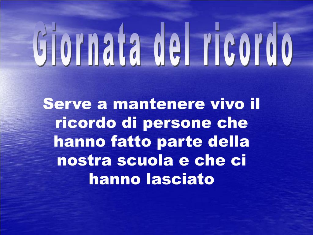 Giornata del ricordo Serve a mantenere vivo il ricordo di persone che hanno fatto parte della nostra scuola e che ci hanno lasciato