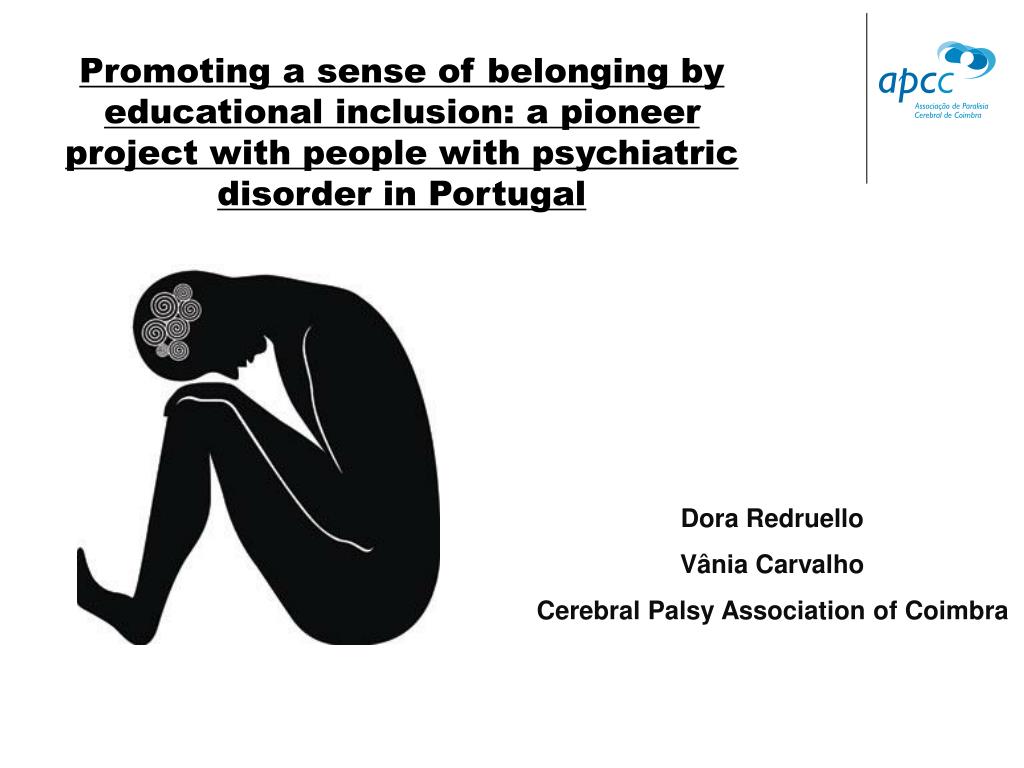 Promoting a sense of belonging by educational inclusion: a pioneer project with people with psychiatric disorder in Portugal Serviço de Psiquiatria Forense Dora Redruello Vânia Carvalho Cerebral Palsy Association of Coimbra