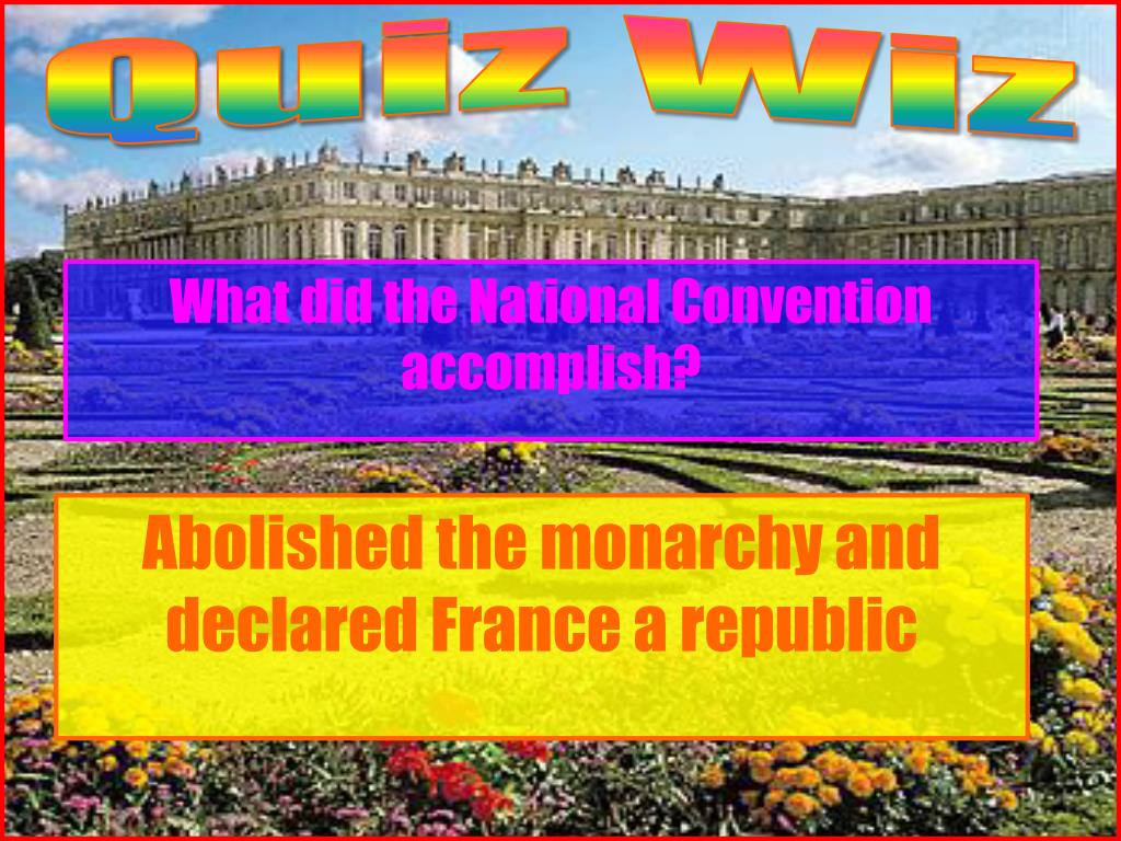 Quiz Wiz What did the National Convention accomplish? Abolished the monarchy and declared France a republic