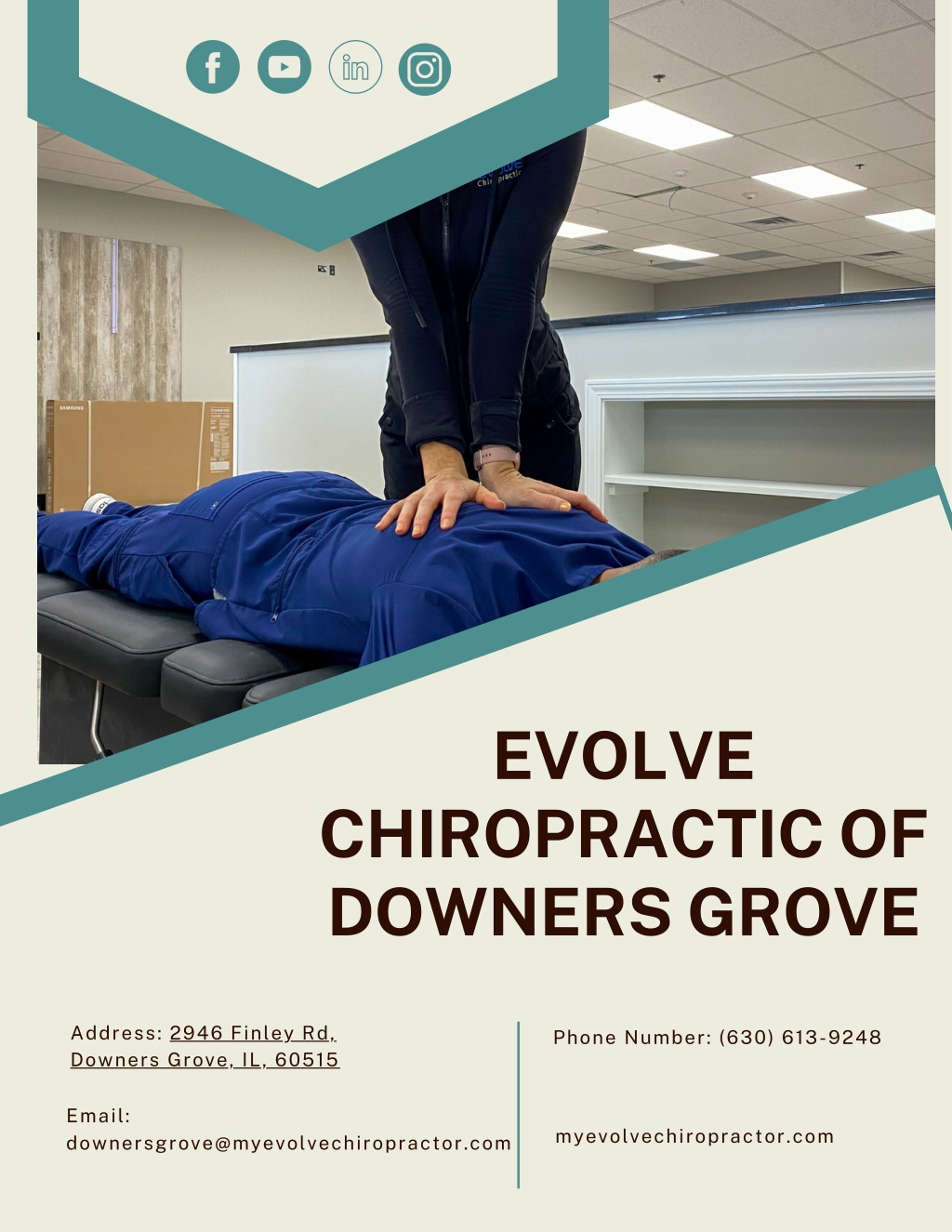EVOLVE CHIROPRACTIC OF DOWNERS GROVE Address: 2946 Finley Rd, Downers Grove, IL, 60515 Phone Number: (630) 613-9248 Email: downersgrove@myevolvechiropractor.com myevolvechiropractor.com