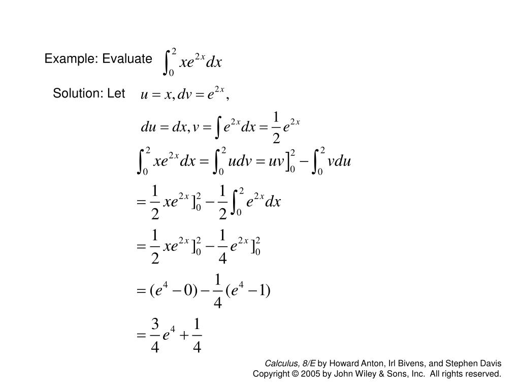 Repeated Integration by Parts Example: Evaluate Solution: Let Apply integration by parts to