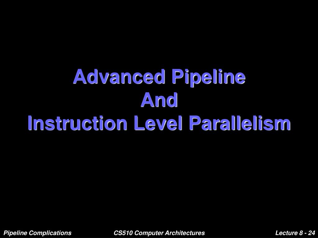 Advanced PipelineAndInstruction Level Parallelism CS510 Computer Architectures