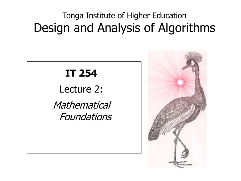 Tonga Institute of Higher EducationDesign and Analysis of Algorithms IT 254 Lecture 2: Mathematical Foundations
