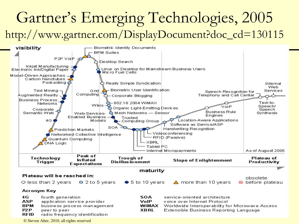 Gartner’s Emerging Technologies, 2005 http://www.gartner.com/DisplayDocument?doc_cd=130115