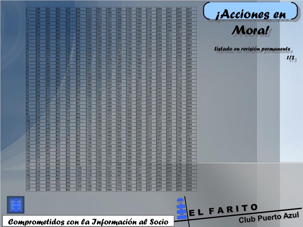 ¡Acciones en Mora! • Listado en revisión permanente • 1/2 Comprometidos con la Información al Socio