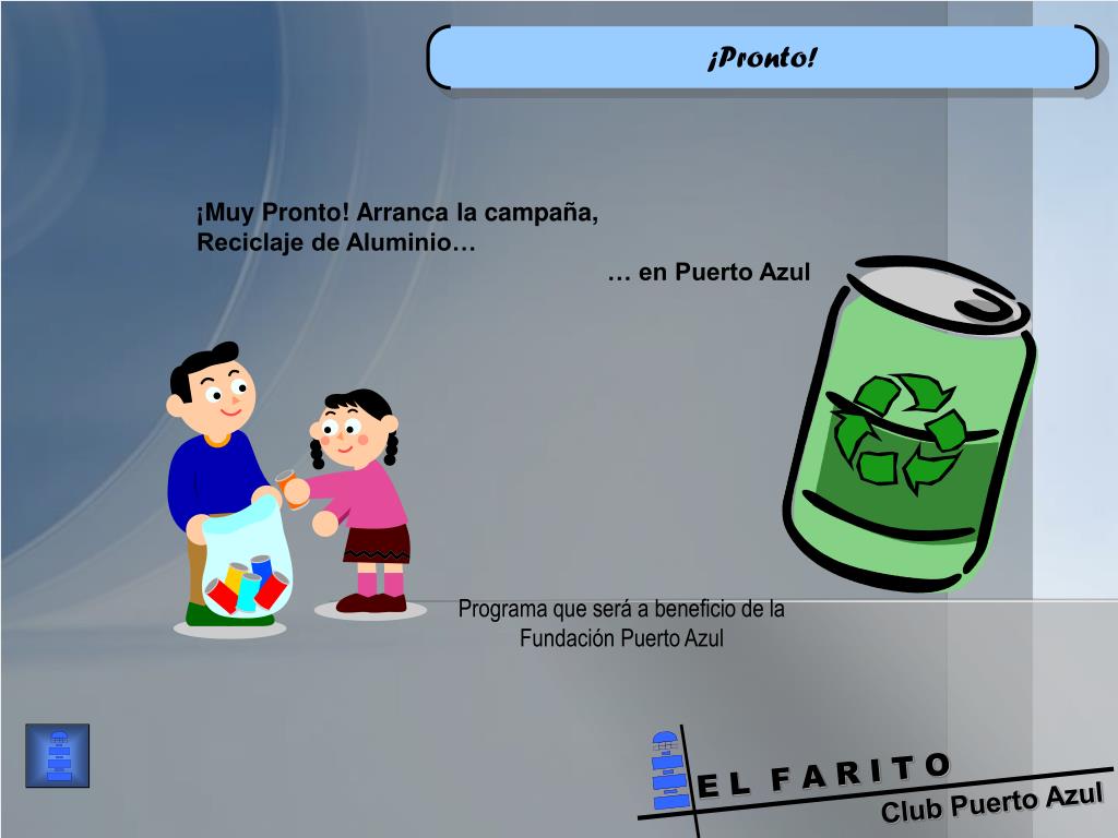 ¡Pronto! ¡Muy Pronto! Arranca la campaña, Reciclaje de Aluminio… … en Puerto Azul Programa que será a beneficio de la Fundación Puerto Azul