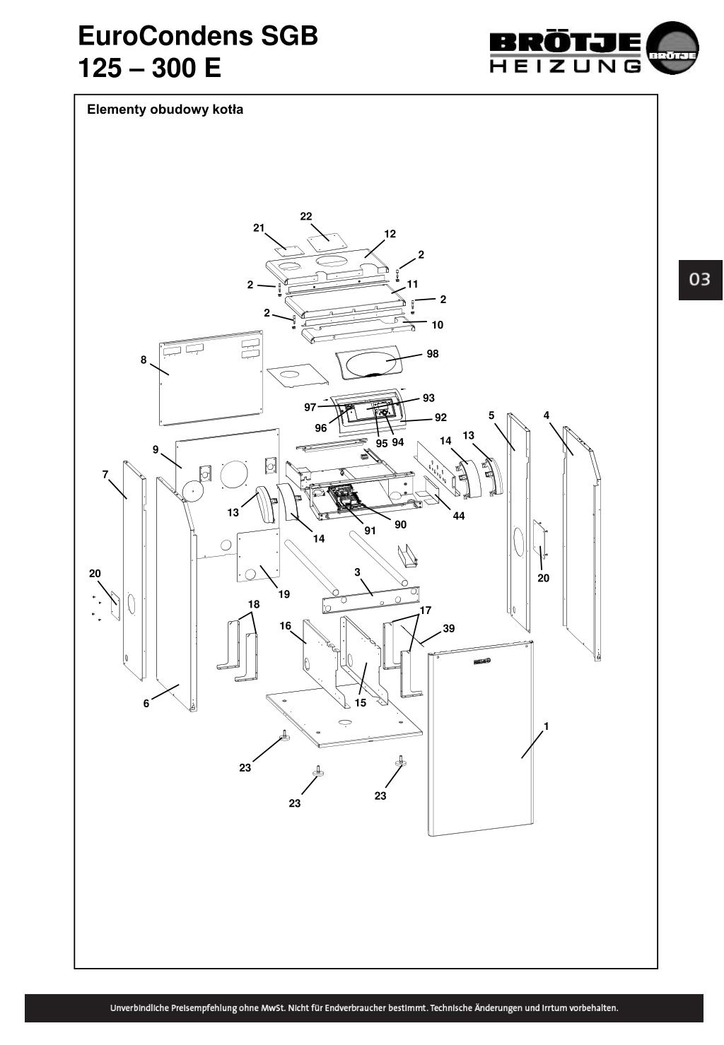 EuroCondens SGB 125 – 300 E Elementy obudowy kotła 22 21 12 2 11 2 2 2 10 98 8 93 97 5 4 92 96 13 14 94 95 9 7 13 44 90 91 14 3 20 20 19 18 17 16 39 15 6 1 23 23 23