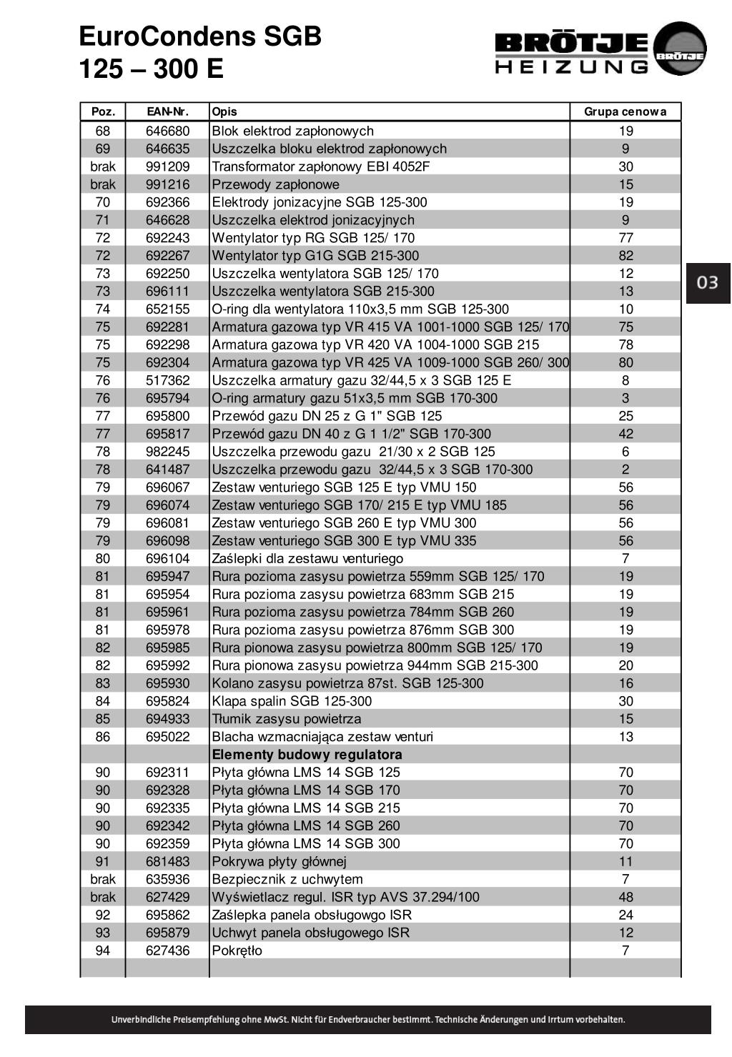 EuroCondens SGB 125 – 300 E Elementy palnika 63 65 64 61 62 67 66 71 70 82 73 72 69 68 80 86 79 74 76 85 83 75 84 76 78 81 78 77 83